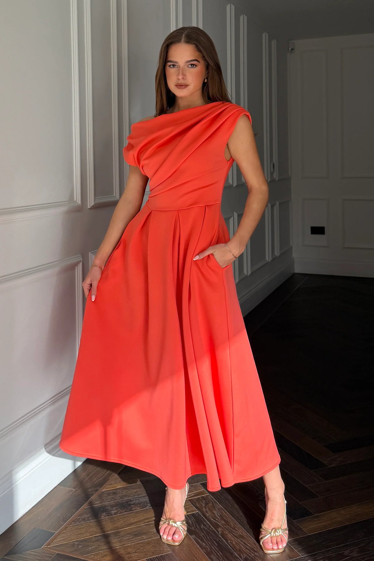 The Betty Asymmetric Midi Dress in Coral is a contemporary piece that combines modern design with effortless elegance. Featuring an asymmetric hemline that creates visual interest and movement, this midi dress offers a flattering silhouette perfect for both casual outings and special occasions. The coral hue brings warmth and vibrancy to any wardrobe, while the midi length provides versatile styling options. Ideal for those seeking a statement piece that balances sophistication with contemporary flair.
