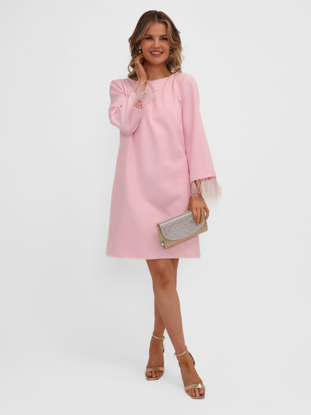 The Dakota Mini Shift Dress captures Kate & Pippa's essence of refined elegance through thoughtfully curated details. A commanding bow adorns the back whilst delicate sheer sleeves with feather-trimmed cuffs add an air of sophistication. Cut in a flattering mini shift silhouette with a V-back neckline, this dress is crafted from premium fabric that falls with graceful fluidity. Perfect for weddings and evening occasions, style with nude heels and bold jewellery for an understated yet memorable impression.