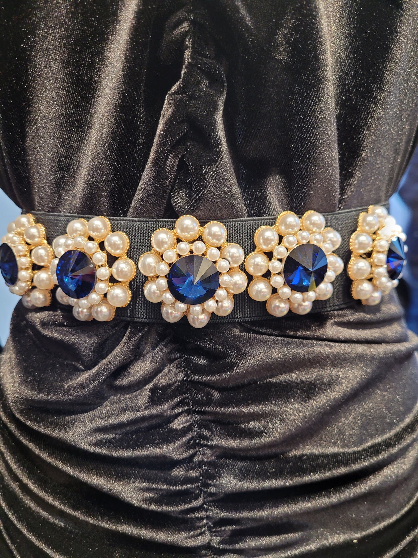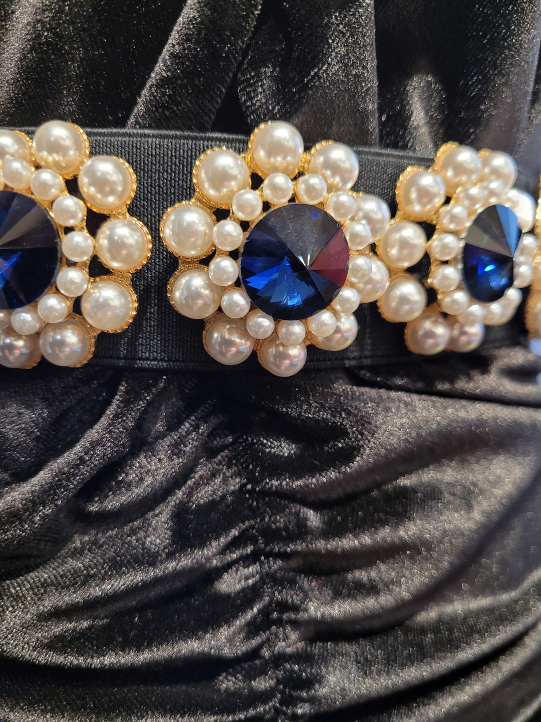 Blue jewel and pearl embellishment