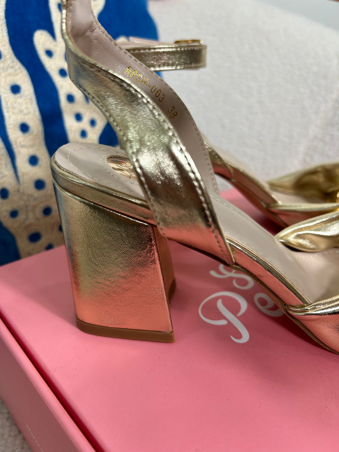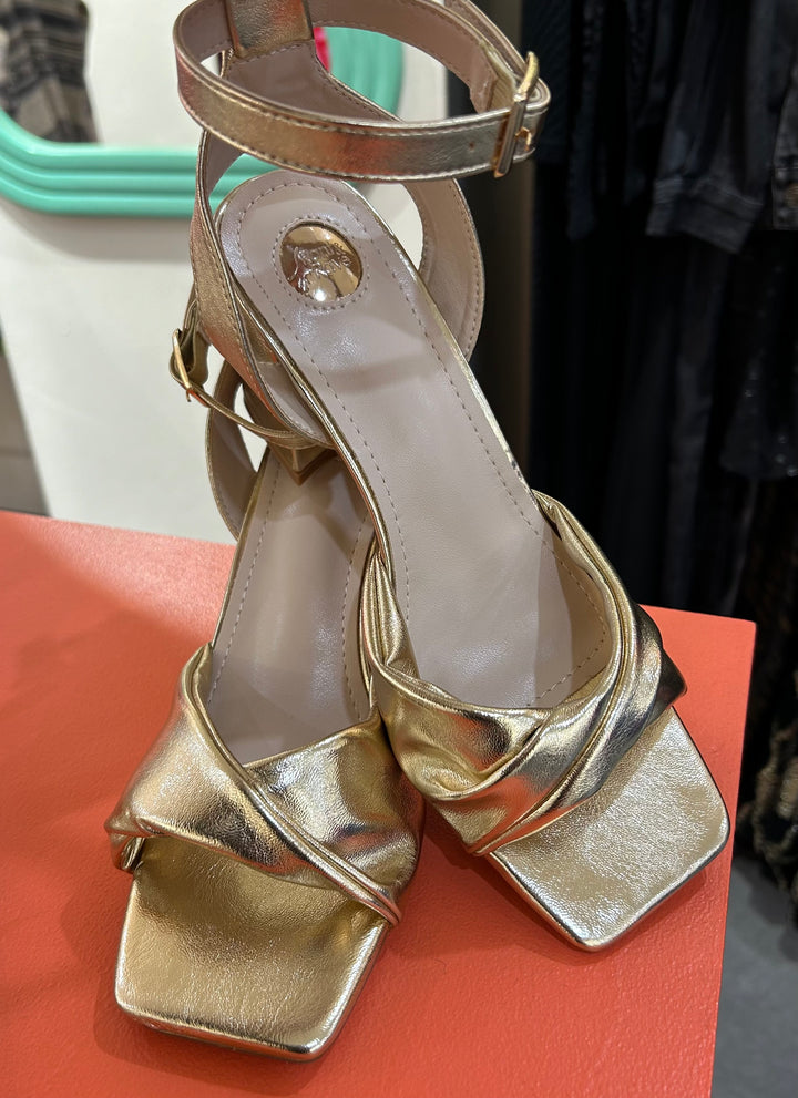 Experience elegance and comfort with our GOLD CAYLA SANDAL. Featuring a stylish metallic gold block heel and an adjustable buckle strap around the ankle, our sandal allows for a perfect fit every time. The perfect addition to any outfit for a touch of sophistication.