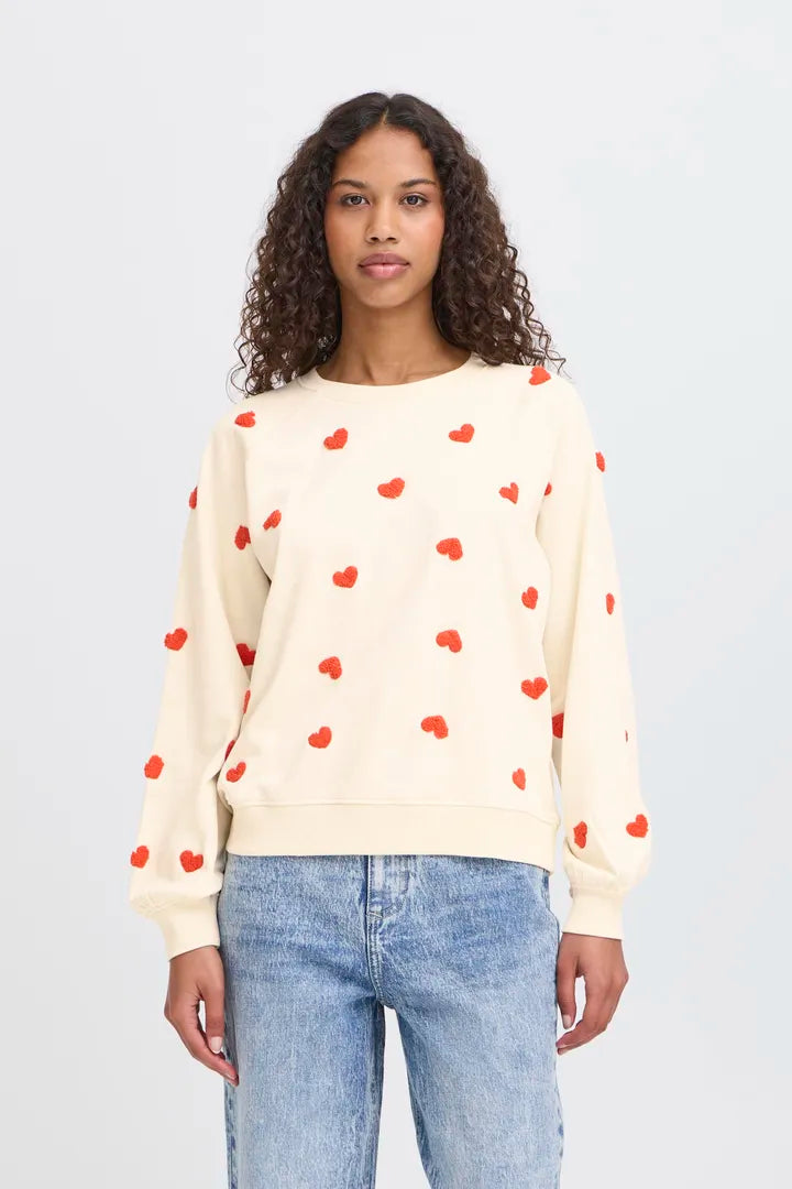The Kasura Sweater features a cream base adorned with vibrant red love hearts, combining classic charm with a playful touch. Crafted with long sleeves for added warmth, this sweater offers both comfort and style, making it an ideal choice for cooler days while expressing a subtle romantic flair. Its versatile design pairs effortlessly with various outfits, ensuring a refined yet approachable look.