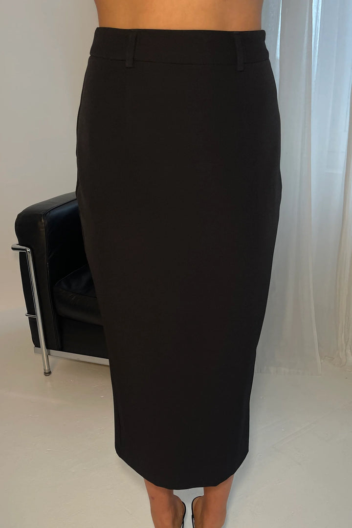 Tailored never goes out of style! Introducing our new Vicky Reversible Midi Skirt. Crafted for a premium fabric. Dense and with added stretch to flatter your curves. Wear it with a front or back split!