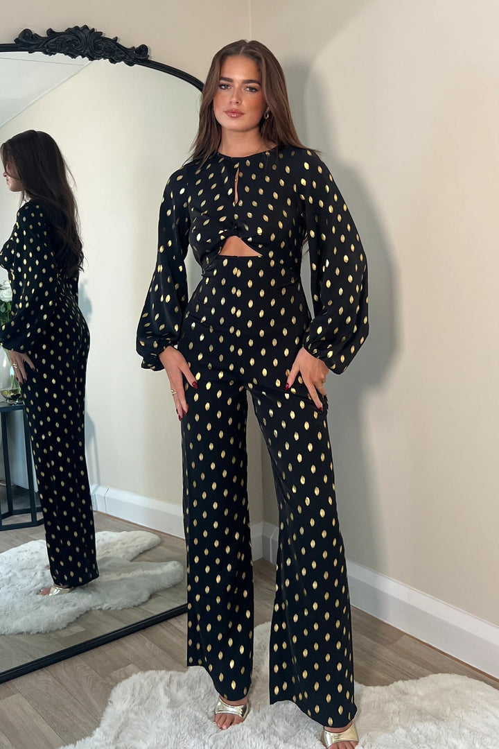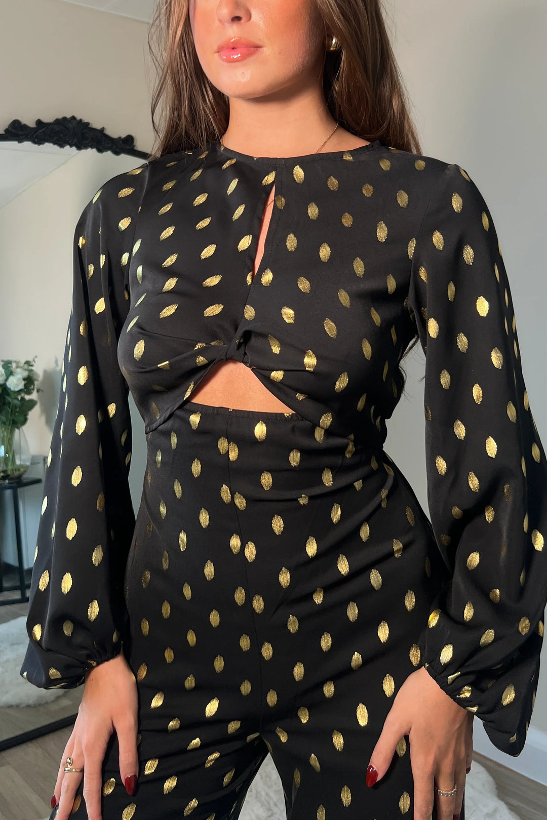 BLACK GOILD FOIL CUT OUT JUMPSUIT