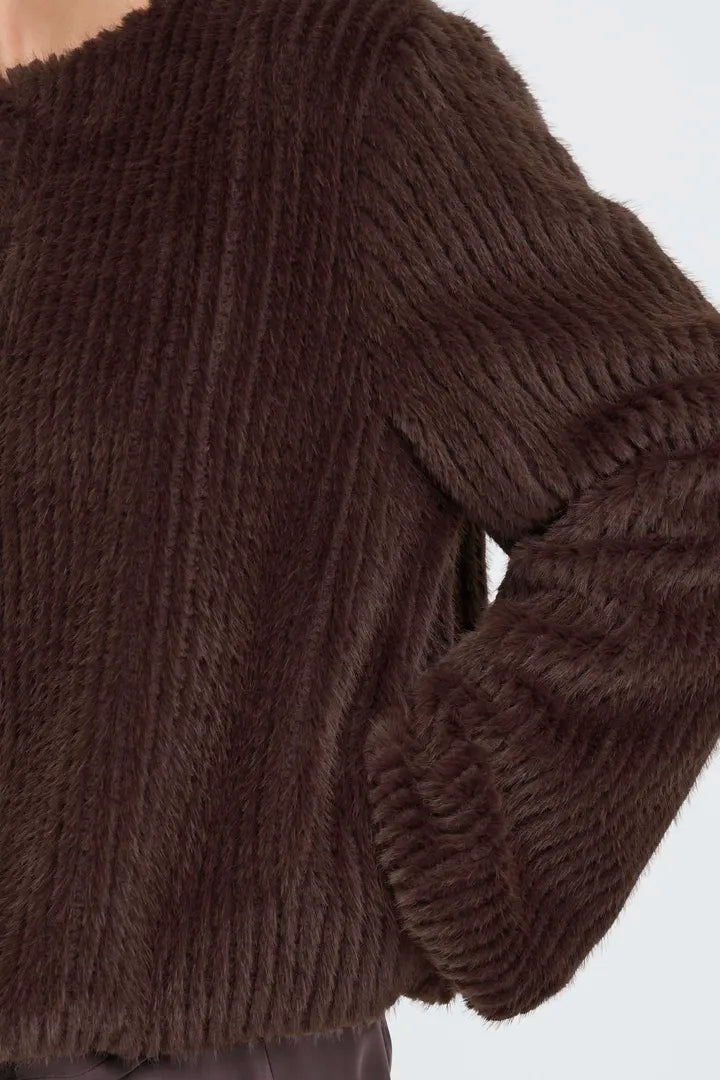 Elevate your outerwear collection with the CIKORA Jacket, crafted from rich chocolate brown faux fur. This jacket offers luxurious warmth and a plush texture, making it ideal for chilly days without compromising style. Its refined design complements both casual and formal looks, providing versatile comfort and timeless elegance. Perfect for sophisticated layering, the CIKORA Jacket delivers expert-quality fashion with ethical materials.