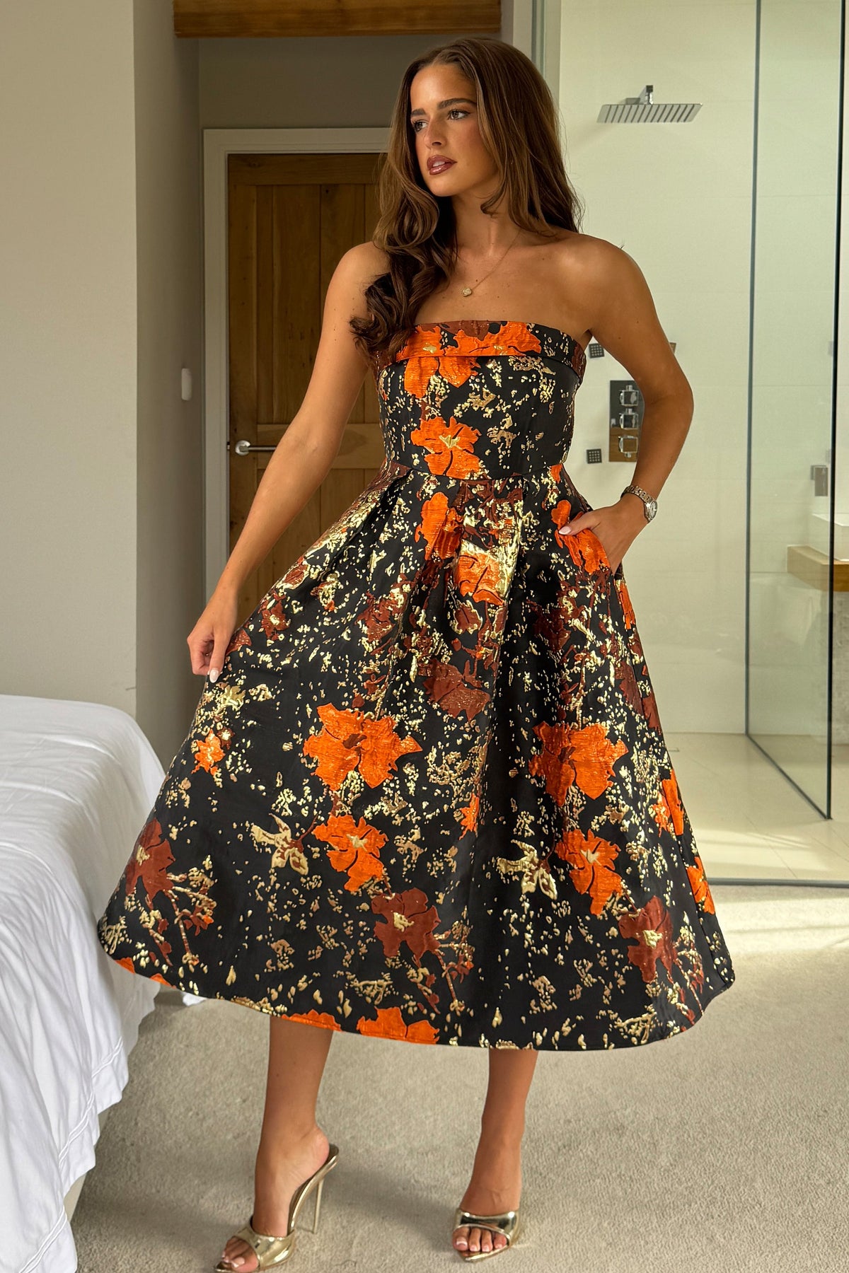 You name the occasion, we have the perfect dress. Crafted in a premium Jacquard fabric, Danni effortlessly compliments every body. Beautifully flowing with a cinched in waist, this midi dress boasts a pleated skirt that creates an elegant sense of movement. For a timeless race day look, try styling yours with some simple gold earrings and strappy stilettos.The model wears a UK 8 and is 5'6".