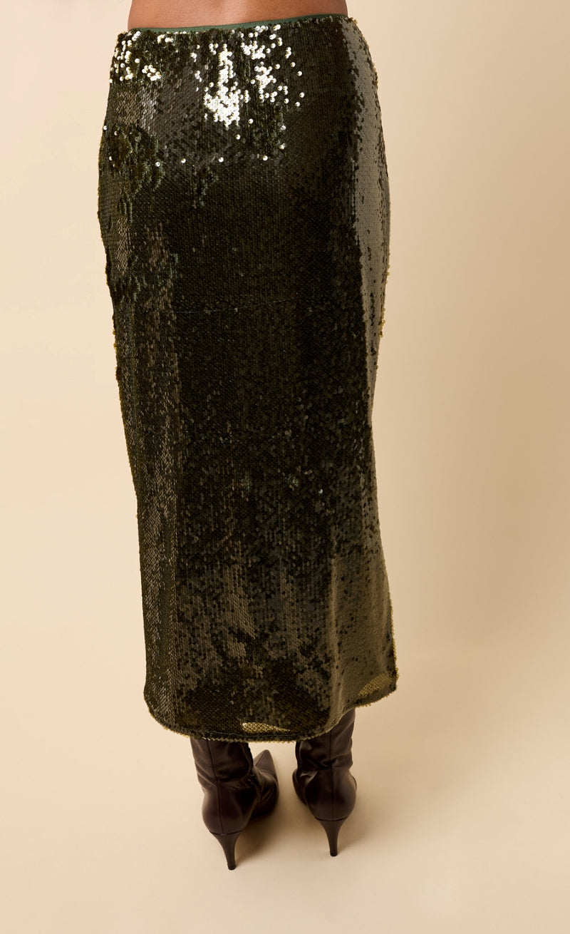 Shimmer in style with this stunning khaki sequin midaxi skirt, perfect for making a statement. Its A-line shape and regular fit create a flattering silhouette that suits every body. Sitting comfortably at the waist, the midaxi length adds a modern twist to classic sparkle. Ideal for evening glam or a festive daytime look, it's a true showstopper.