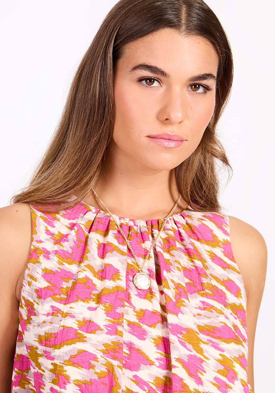 The Multi Print Top is a vibrant and stylish addition to your wardrobe. Featuring a round neck and sleeveless design, this top offers a relaxed, cropped fit that pairs beautifully with high-waisted trousers or skirts. Crafted from lightweight, printed fabric, it’s perfect for staying cool and chic during warmer months.