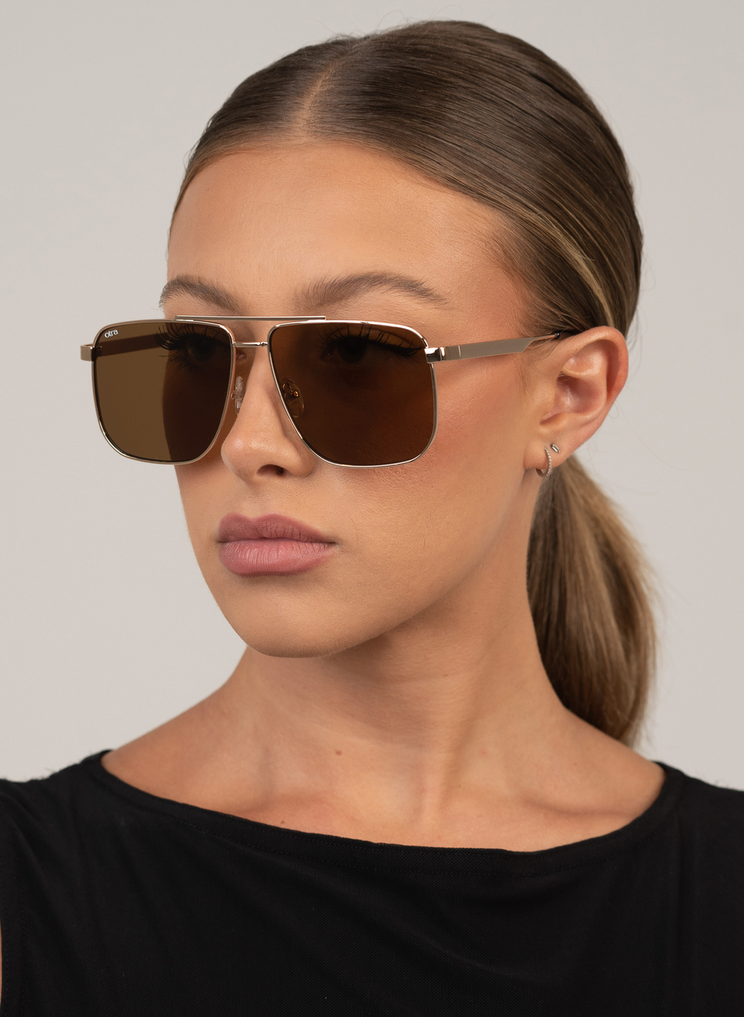 OVERSIZED SQUARED METAL AVIATOR WITH GOLD FRAME AND BROWN LENS